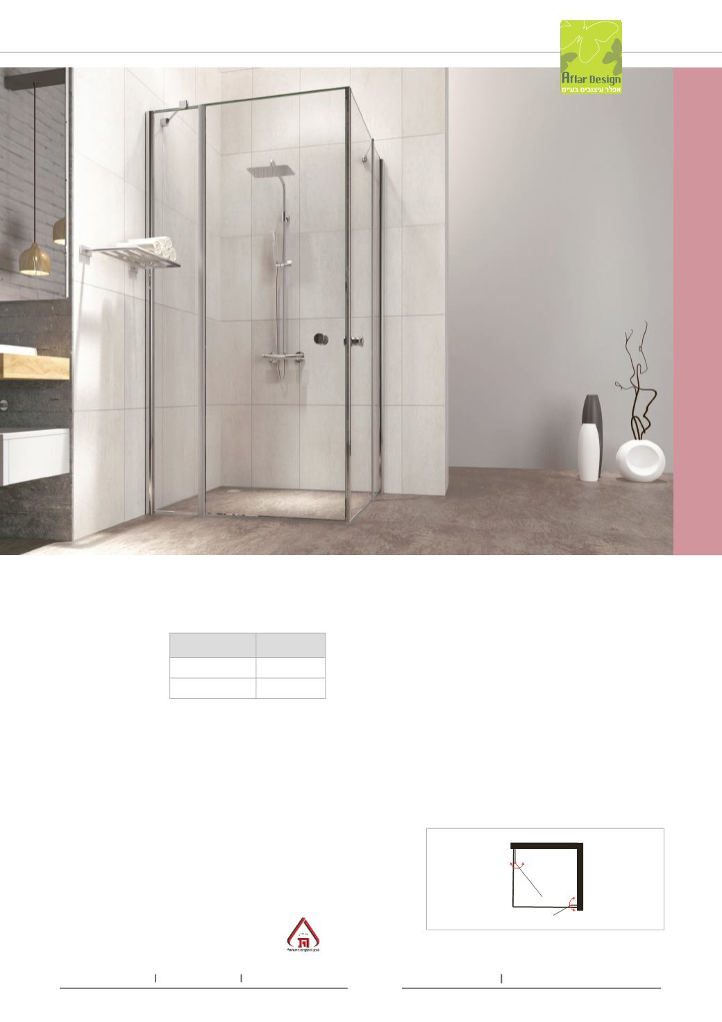 מקלחון פינתי פרופילים- דופן אחת דלת נפתחת